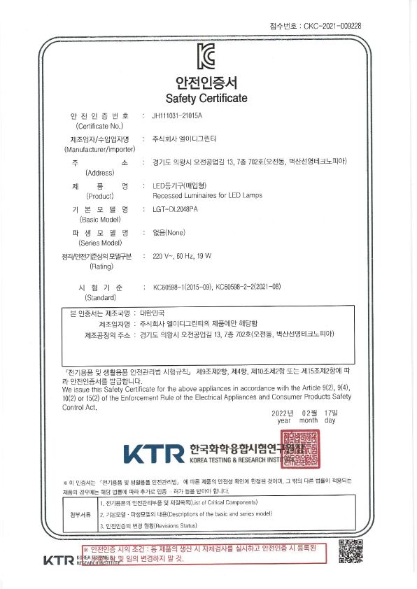 | 전파적합번호 | R-R-Grt-LGT-DL2048PB |