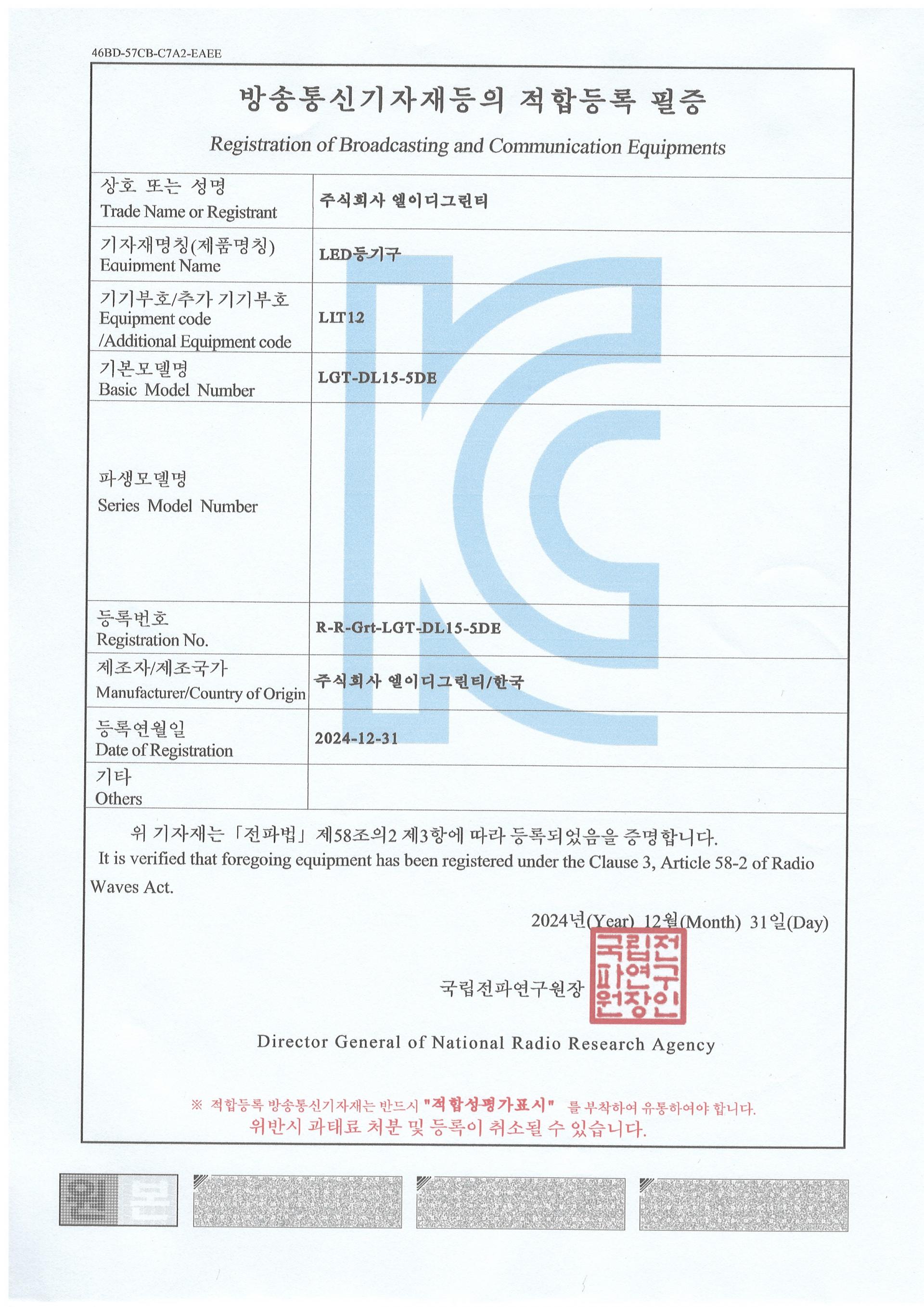 | 전파적합번호 | R-R-Grt-LGT-DL15-5DE |