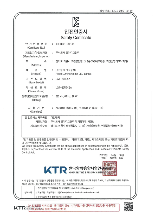 | 전파적합번호 | R-R-Grt-LGT-20FEXA |