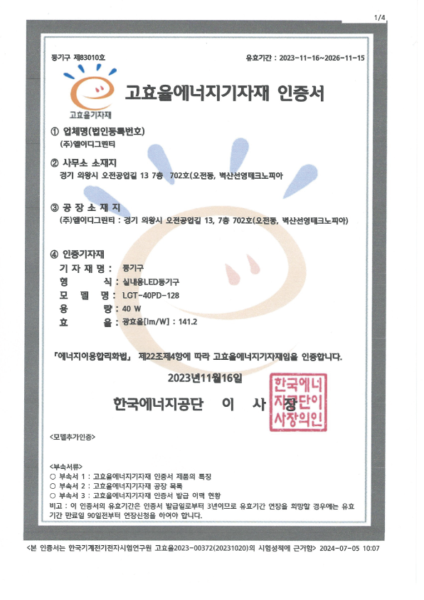 | 고효율 인증 | 제 83010호 |