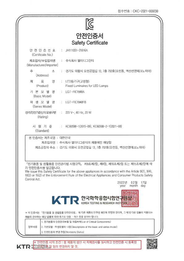 | 전파적합번호 | R-R-Grt-LGT-FIC1948A |