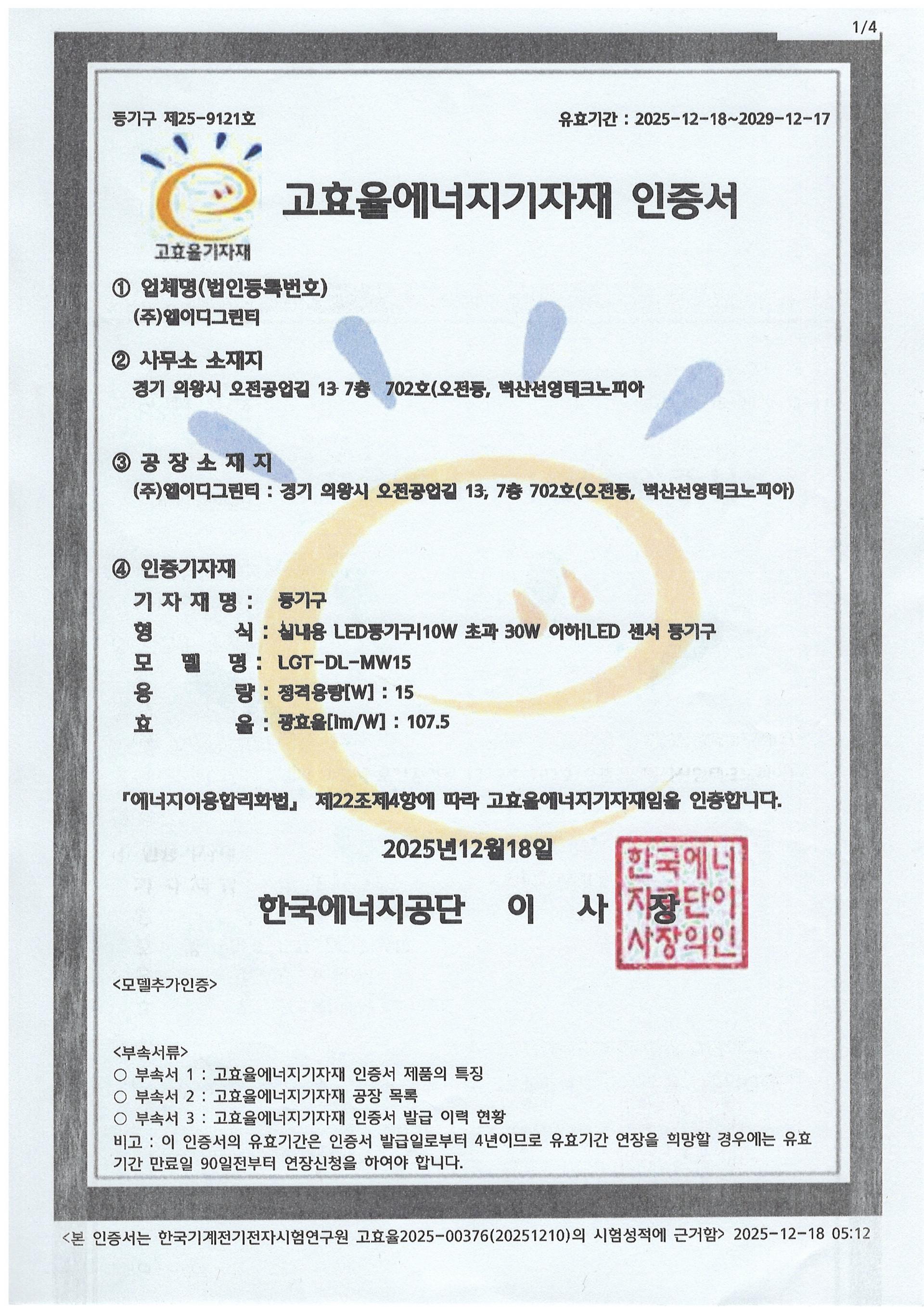 | 고효율 인증 | 제25-9121호 |