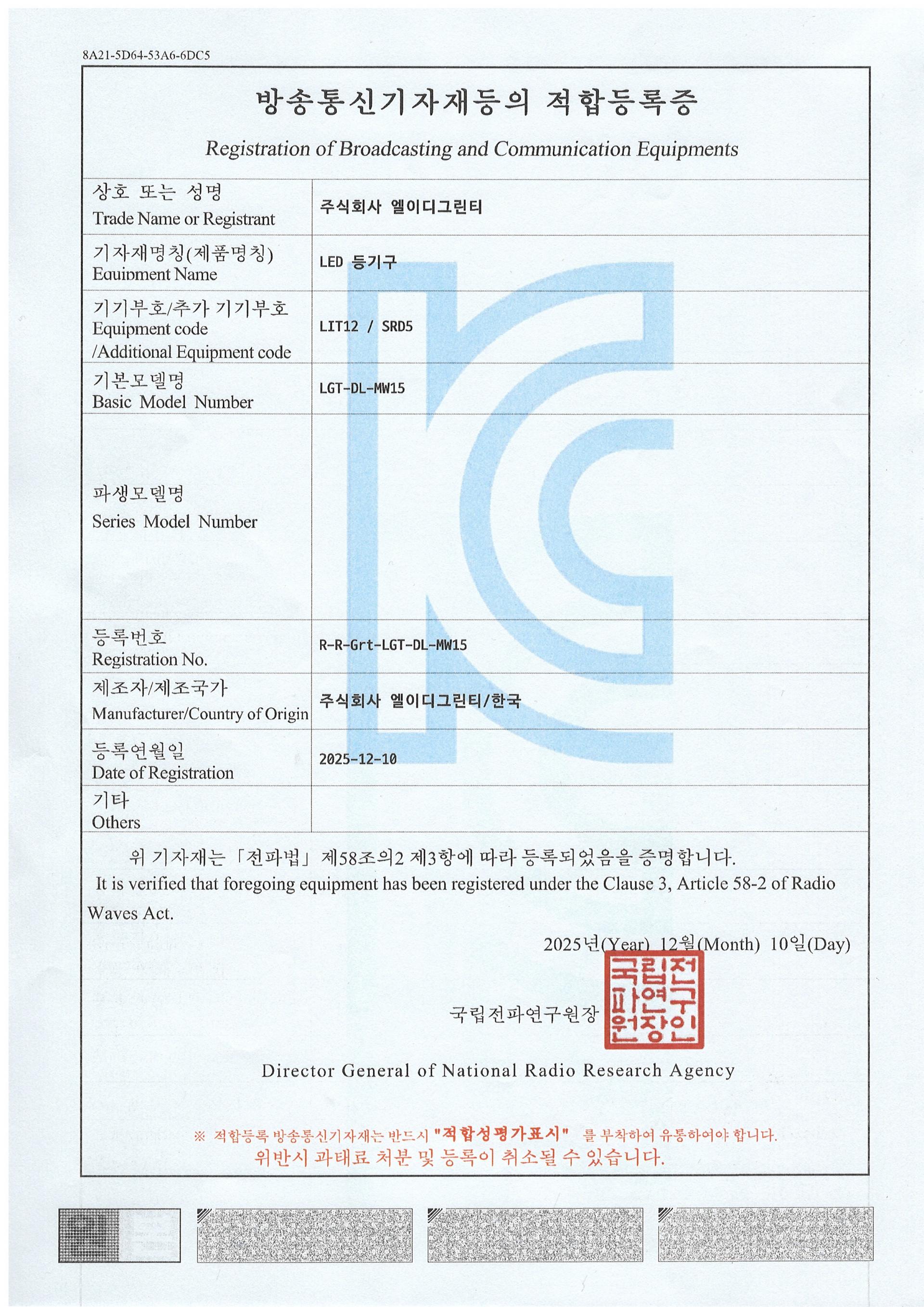 | 전파적합번호 | R-R-Grt-LGT-DL-MW15 |